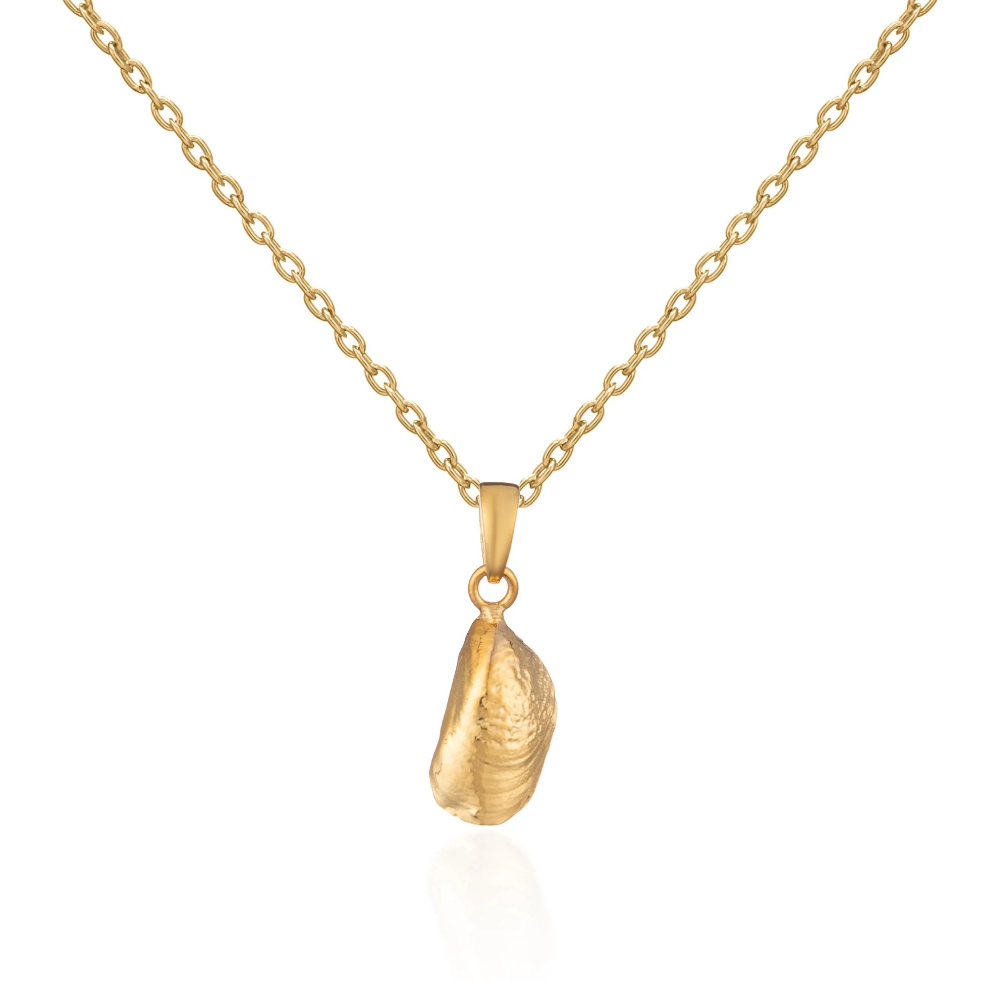 Gold vermeil small mussel shell pendant has been hand made from casting a Cornish mussel shell in 925 sterling silver then coating in a thick 3 Macron of 18 carat gold Vermeil giving this pendant beautiful detail.