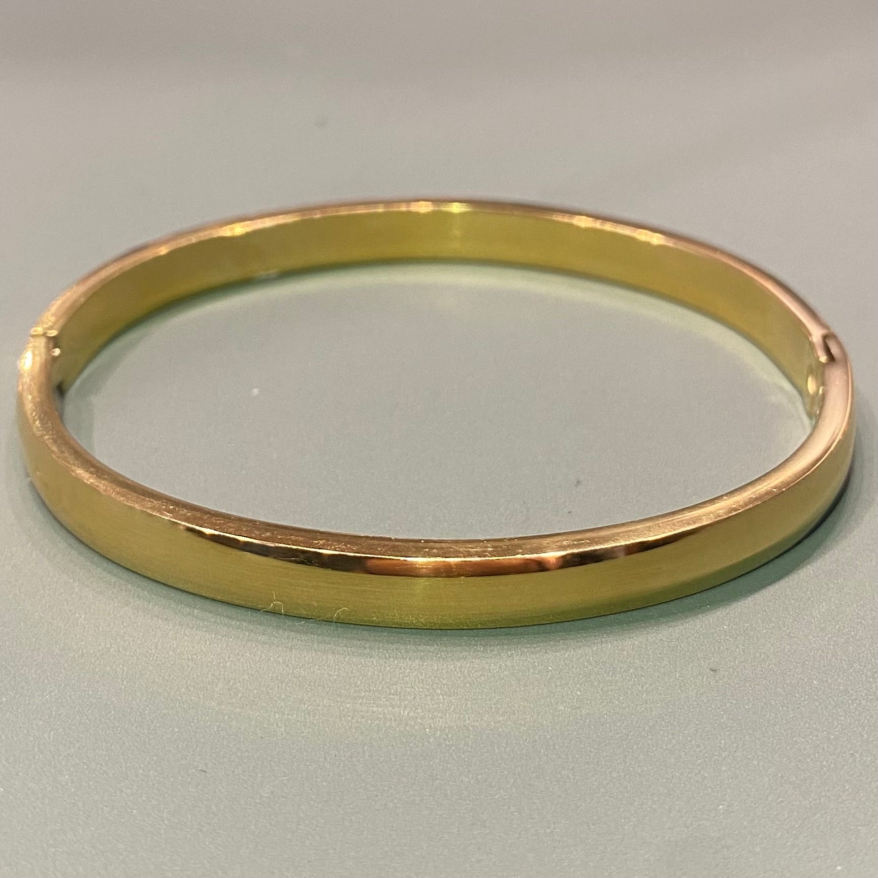 Made from Stainless Steel, this gorgeous minimalist style can be dressed up or down. It openes at one side so does not slide over the hand. 6mm depth. Waterproof and tarnish resistant.